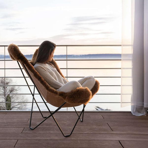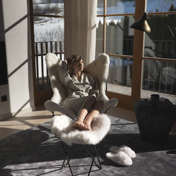 Last but not least, the unexplained invention of the Butterfly Chair gives it an almost mystical history. In the reinvention of WEICH, the clear lines of the minimalist design are combined with the incredible softness of the alpaca - creating a new type of lounge chair that is second to none. Based on the frame of the Swedish label CUERO Design, WEICH completes the chair with a hitherto unique note of warmth and comfort.