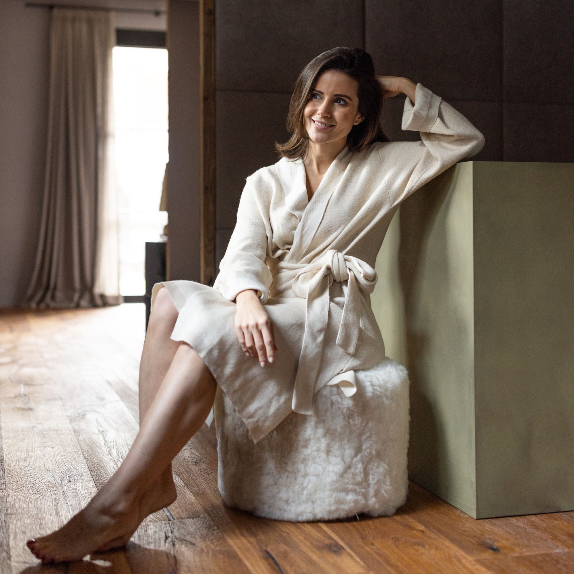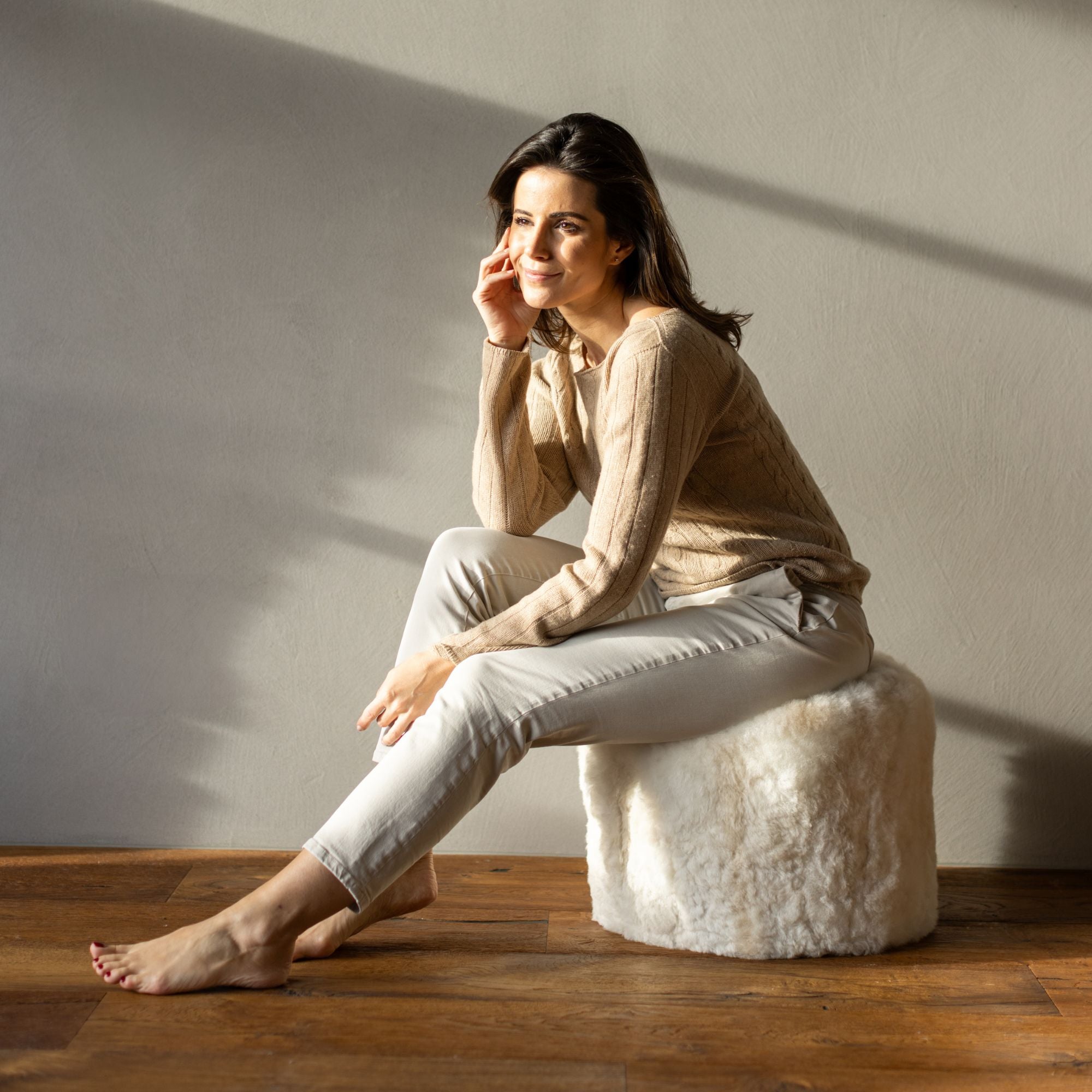 The alpaca fiber has a natural sheen. It is breathable, has unique warming properties and contains hardly any lanolin (wool grease). This makes it suitable for allergy sufferers, babies and the most sensitive skin. Dust-repellent, self-cleaning, low-linting and almost completely pilling-free, the product should not be exposed to prolonged exposure to strong sunlight. UV radiation can otherwise cause discoloration.